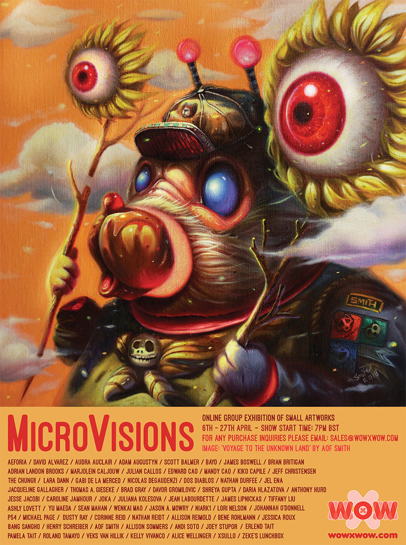MicroVisions is the latest Art Show by Wow x Wow in which all artwork is presented in a small form factor with all art being no larger than 10″ x 10″ or smaller.